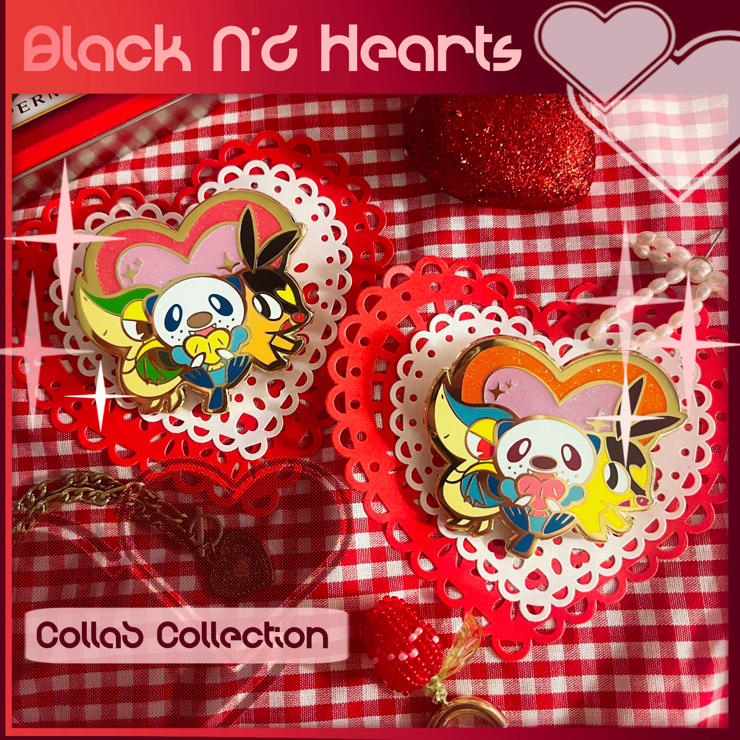 Black N'd Hearts ; Unova Starters Enamel Pin