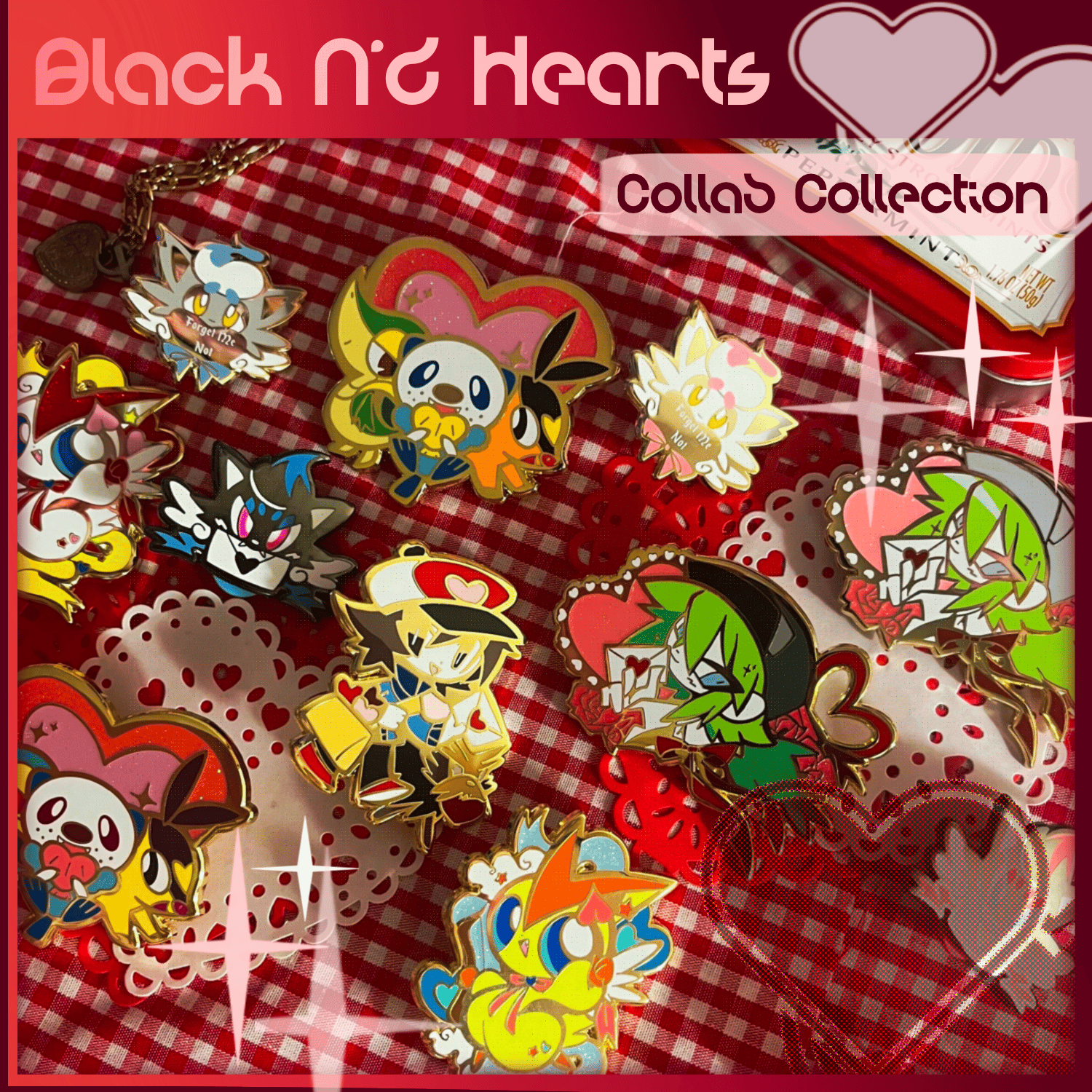 Black N'd Hearts ; Zorua Valentine Enamel Pin